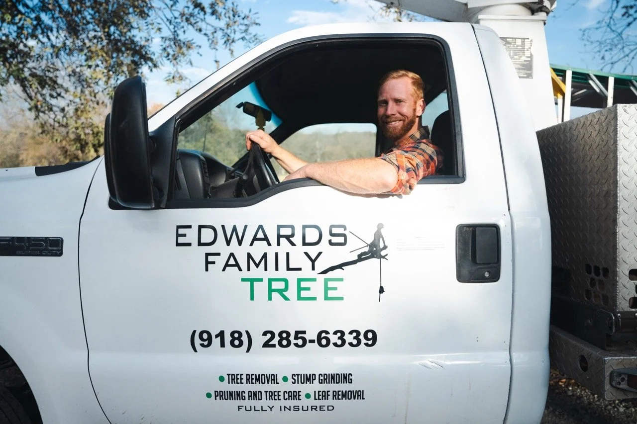 I’m Charlie Edwards, owner of Edwards Family Tree. Growing up north of Pawnee, I spent my youth climbing trees, hauling hay, and chopping firewood.